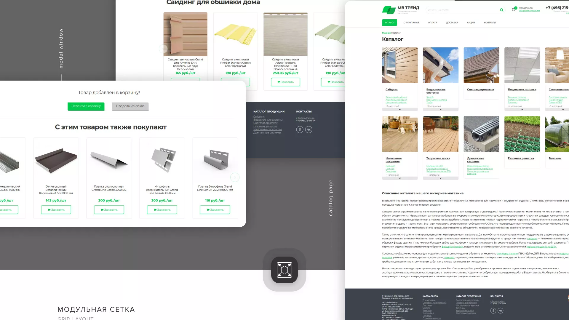 Компания «МВ Трейд» осуществляет продажу сайдинга и отделочных материалов через интернет со своих складов в Сегеже. За 17 лет компания зарекомендовала себя надежным поставщиком. Товары реализуются как оптом, так и в розницу.